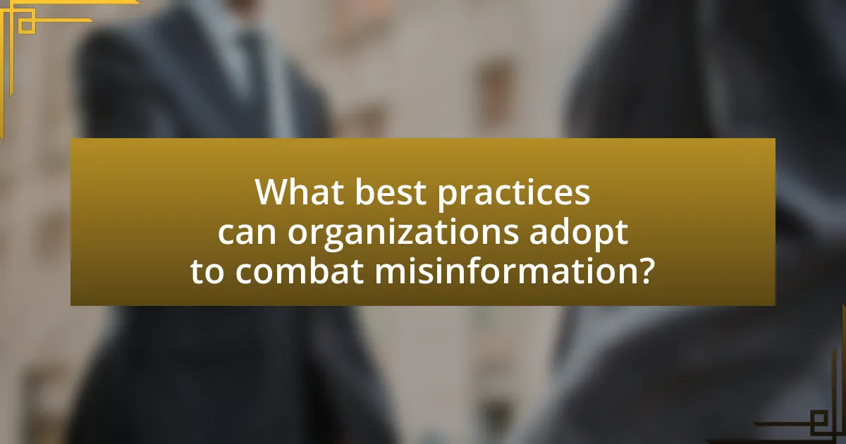 Organizations can adopt several best practices to combat misinformation, including implementing fact-checking protocols, promoting media literacy, and fostering transparent communication. Fact-checking protocols involve verifying information before dissemination, which can significantly reduce the spread of false claims. For instance, organizations like the International Fact-Checking Network have established guidelines that help ensure accuracy in reporting. Promoting media literacy equips individuals with the skills to critically evaluate sources and discern credible information, as evidenced by studies showing that media literacy programs can decrease susceptibility to misinformation. Lastly, fostering transparent communication builds trust with audiences, as organizations that openly share information and address concerns are less likely to be seen as sources of misinformation.